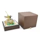 Скульптура, выполненная из бронзы и покрытая слоем никеля и золота высшей пробы, поражает своей детализацией и реалистичным изображением. Она размещена на постаменте из натурального малахита, который придает произведению особую глубину и благородство.